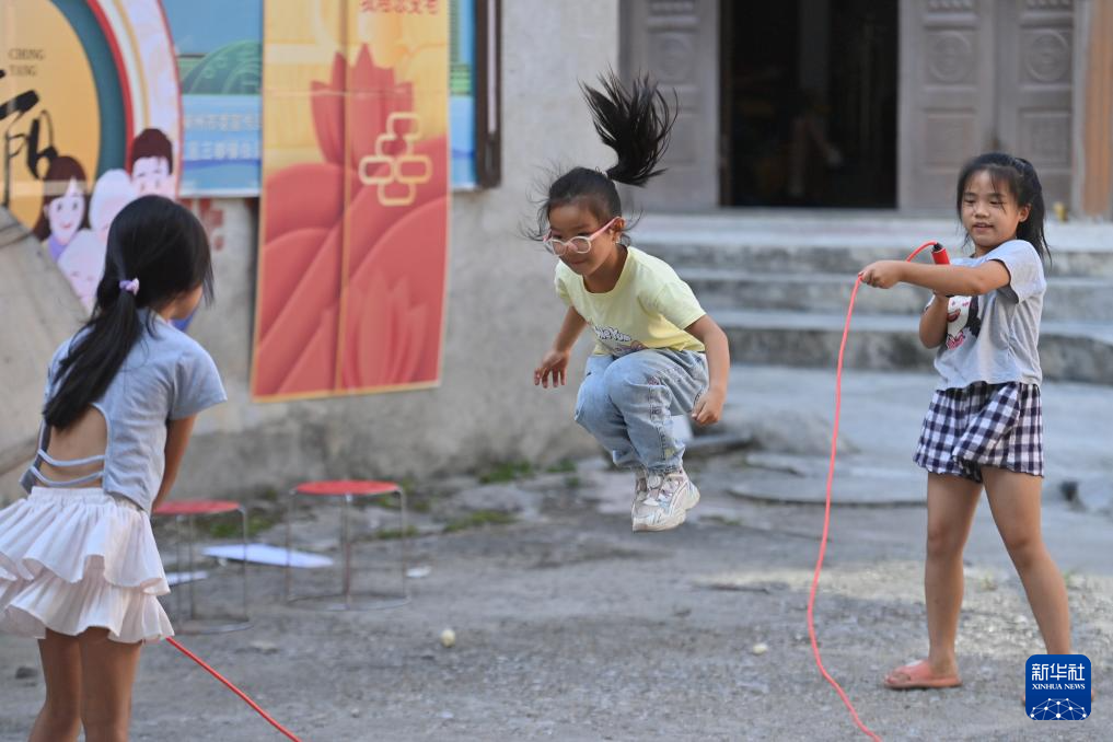 柳州市柳江區三都鎮白見村板朝屯的小朋友們在跳繩(10月6日攝)。