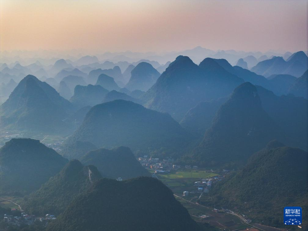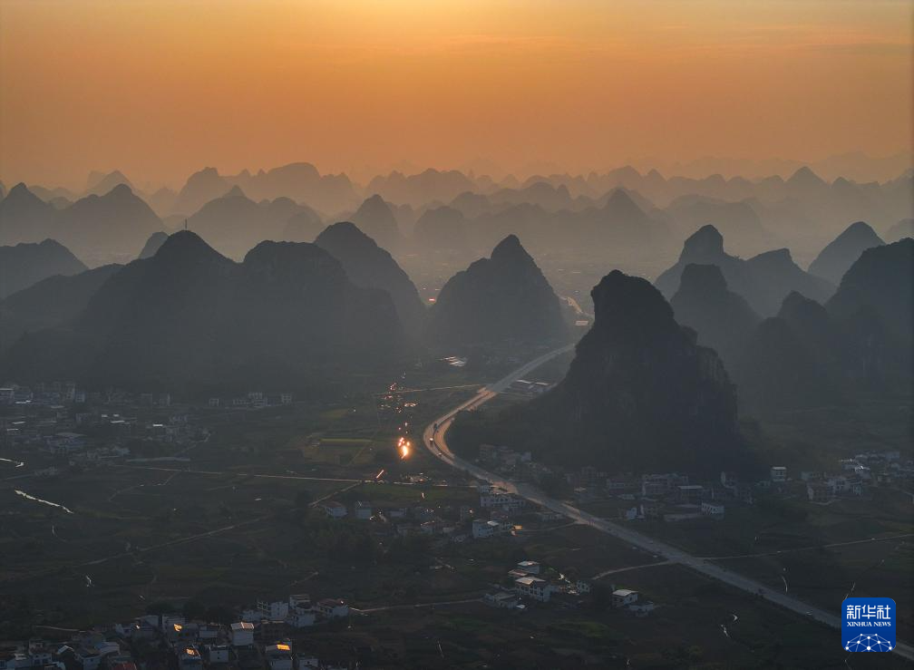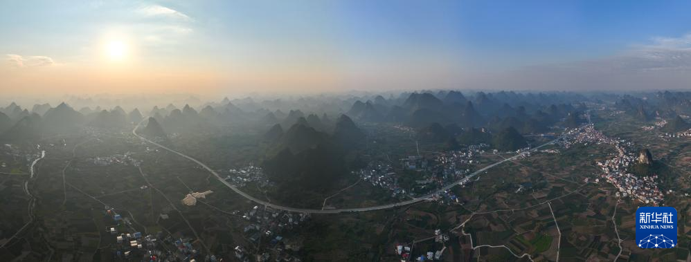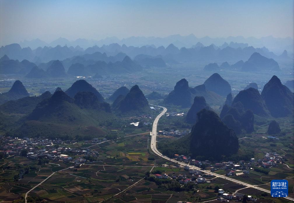 這是柳州市柳江區三都鎮覺山村的田園風光(10月6日攝,無人機照片)。