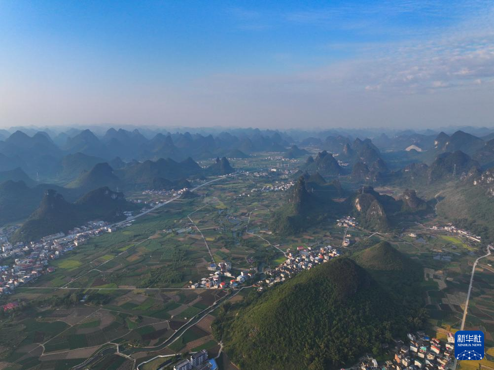 這是柳州市柳江區三都鎮覺山村的田園風光(10月7日攝,無人機照片)。