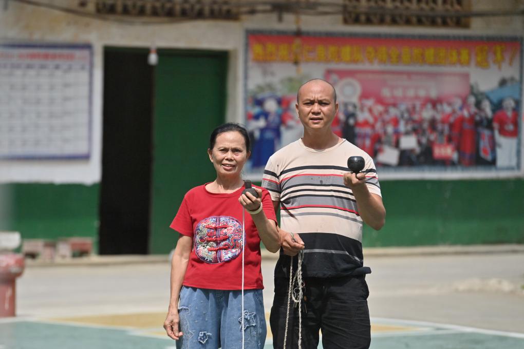 每天晚飯過后,韋壽基和媽媽韋玉春就來到運動場練習打陀螺,老人家笑容多了,身體也好了。