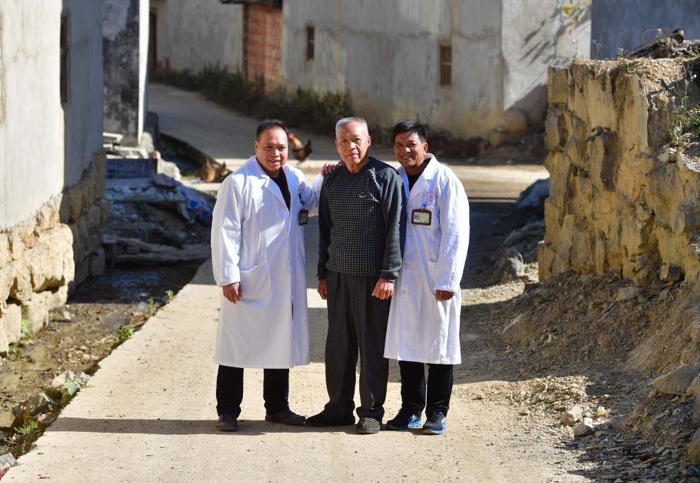 在鹿寨縣四排鎮江南村,覃家父子堅守鄉村衛生室近60年,守護著一方百姓健康。今年76歲的覃紹文從1967年開始擔任江南村的村醫,一直干到2013年退休。