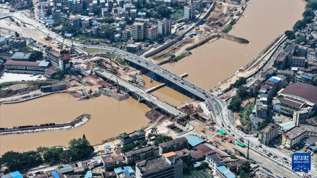 這是正在拆建中的欽州市子材大橋(10月11日攝,無人機照片)。