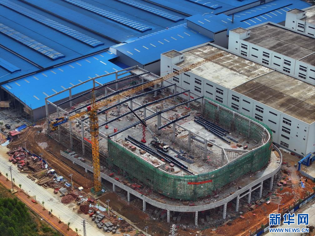 在廣西融水苗族自治縣粵桂協作產業園,工人在建設粵桂幫扶車間(無人機照片,10月19日攝)。