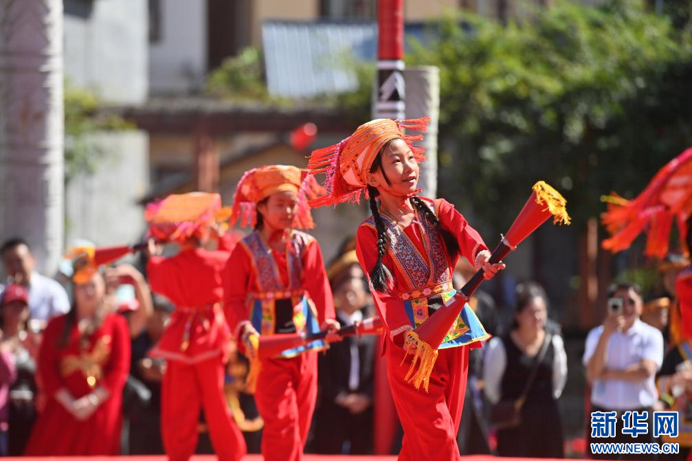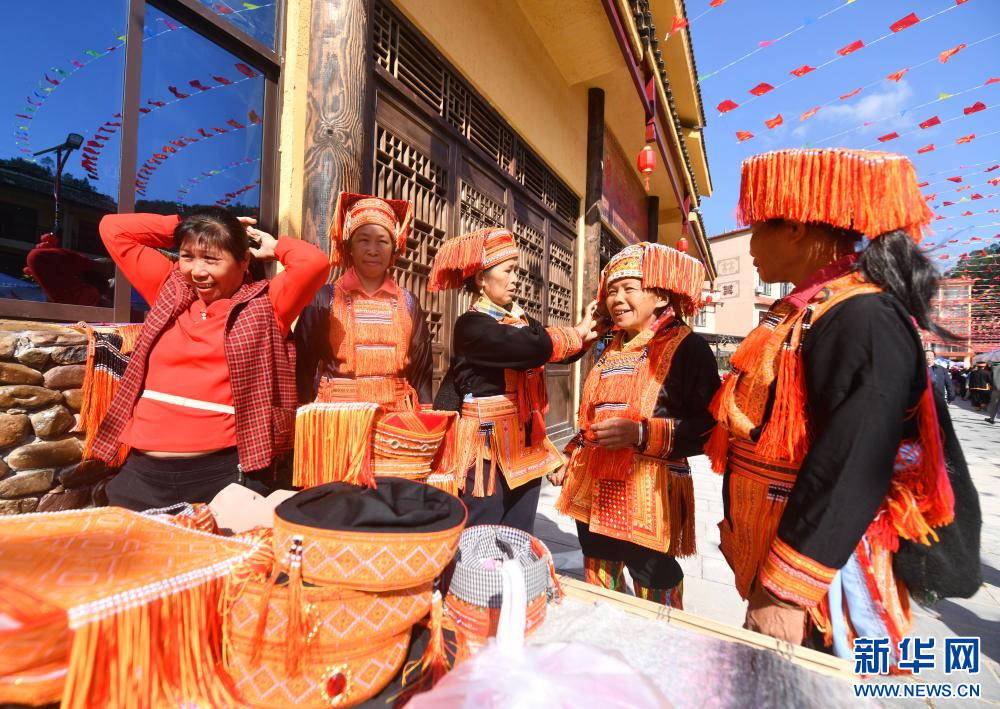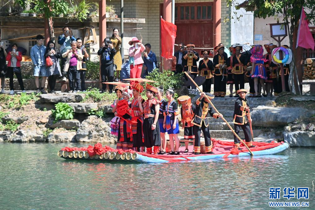 10月23日,演員在梧州市蒙山縣長坪瑤族鄉向游客展示瑤族婚禮。