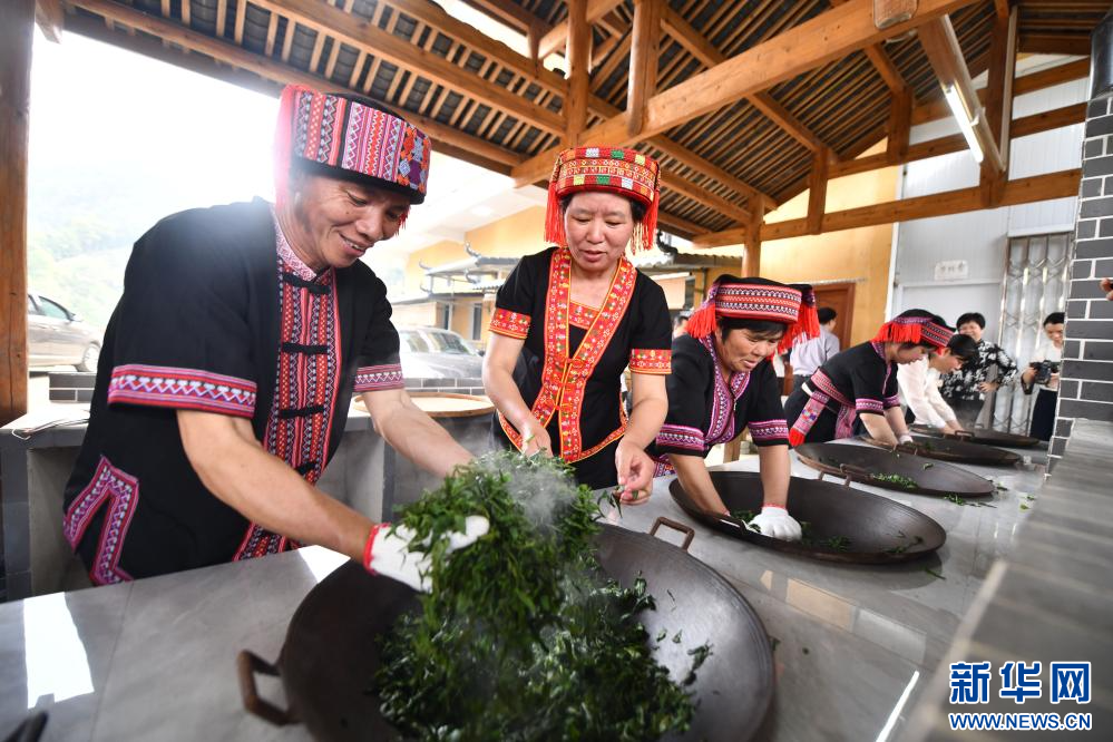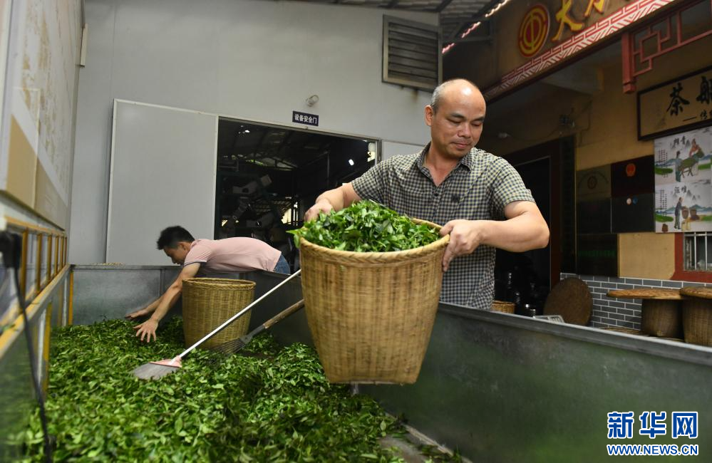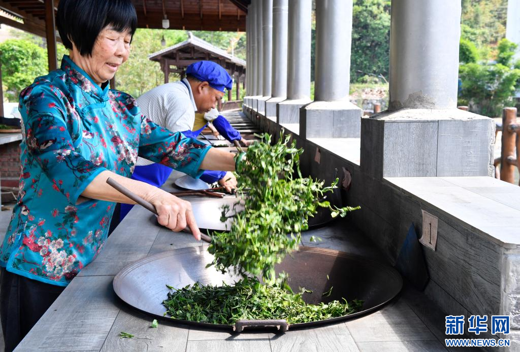在梧州市蒼梧縣六堡鎮山坪村,村民在制茶(9月19日攝)。