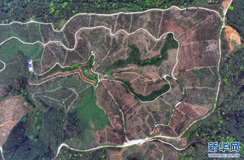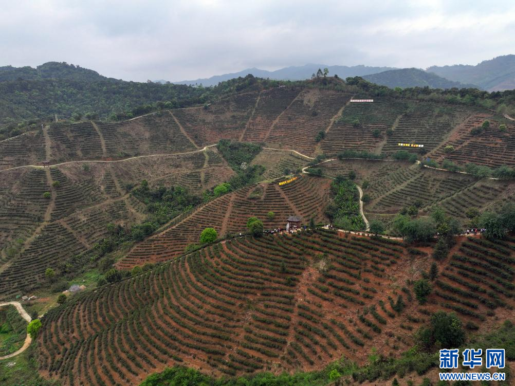這是梧州市蒼梧縣六堡鎮合口茶園(3月26日攝,無人機照片)。