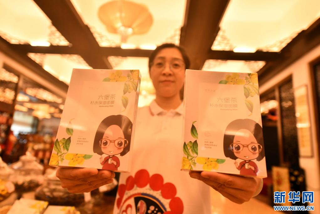 在梧州市天譽茶業有限公司,工作人員在展示六堡茶面膜(10月24日攝)。