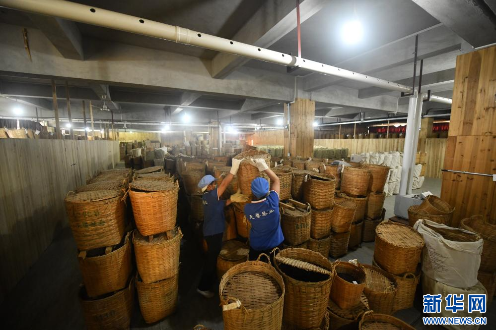 在梧州市天譽茶業有限公司,工人在陳化倉作業(10月25日攝)。