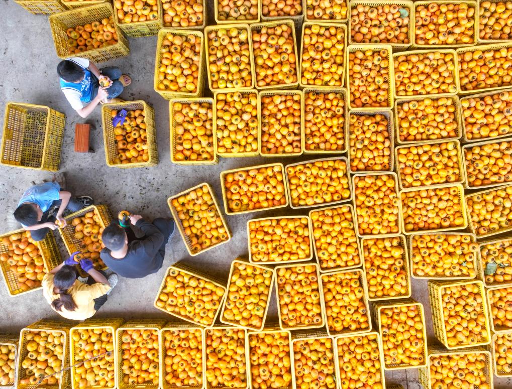 時下,廣西桂林市平樂縣種植的柿子迎來收獲加工季,當地果農趁著晴好天氣采收柿子、加工柿餅,供應市場。平樂是柿子種植大縣和柿餅交易集散地,柿子種植加工歷史悠久。