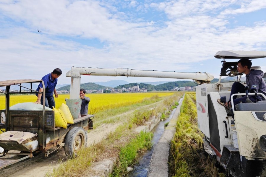 為全力保障秋收作業有序進行,桂平市石龍鎮加強人員、機具的調配以及收割的指導,確保不誤農時、顆粒歸倉,部分種養專業合作社近日也在開展大規模的收割作業,預計11月上旬可全部完成秋收。