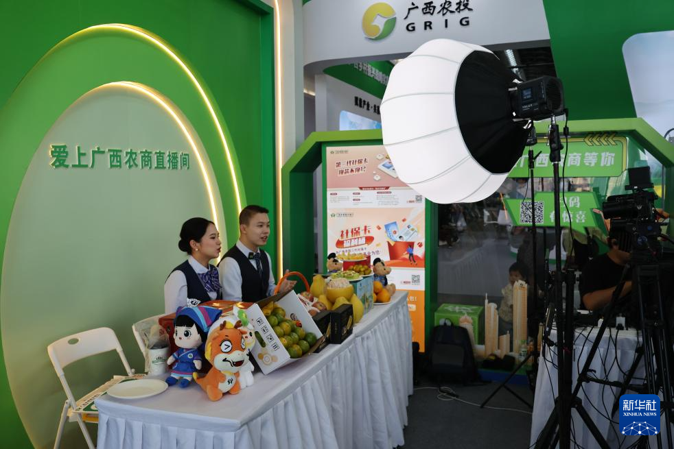 11月8日,在2024年廣西國際農業博覽會,參展商線上直播銷售農產品。