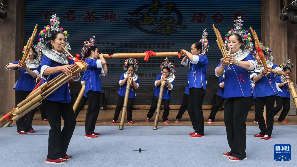 11月9日,在廣西三江侗族自治縣月也侗寨,侗族婦女在演奏。