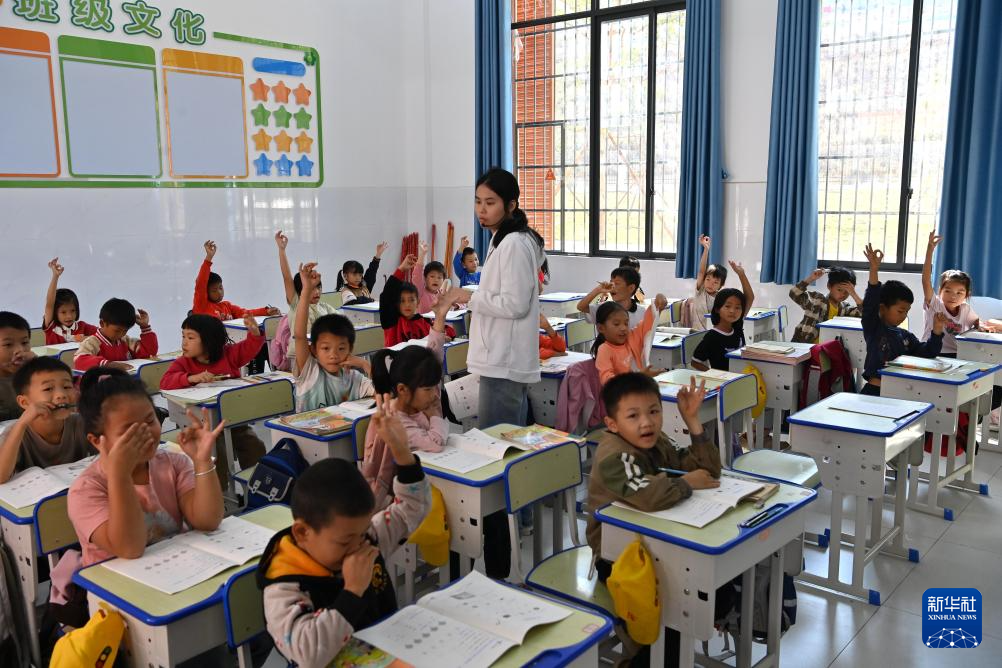 11月7日,孩子們在廣西欽州市靈山縣舊州鎮石橋小學新校區上課。