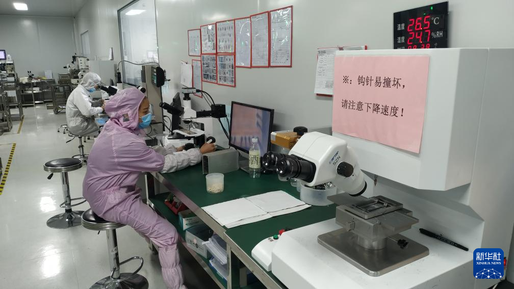 研磨、固晶、焊線、塑封……在位于廣西賀州高新區的廣西天微電子有限公司生產車間內,各生產線機器有序運轉,操作員專注地進行著集成電路封裝工序,全力完成訂單。