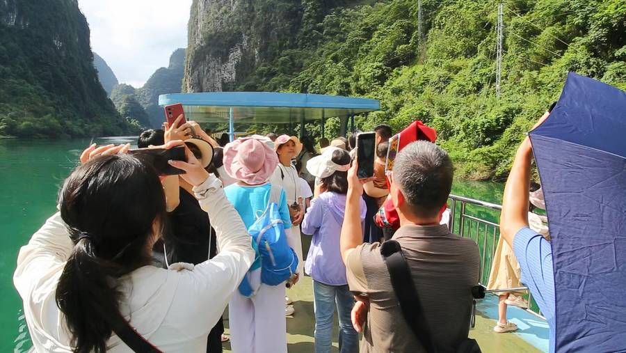 游客在金城江小三峽游玩打卡。 黎煜堅 攝