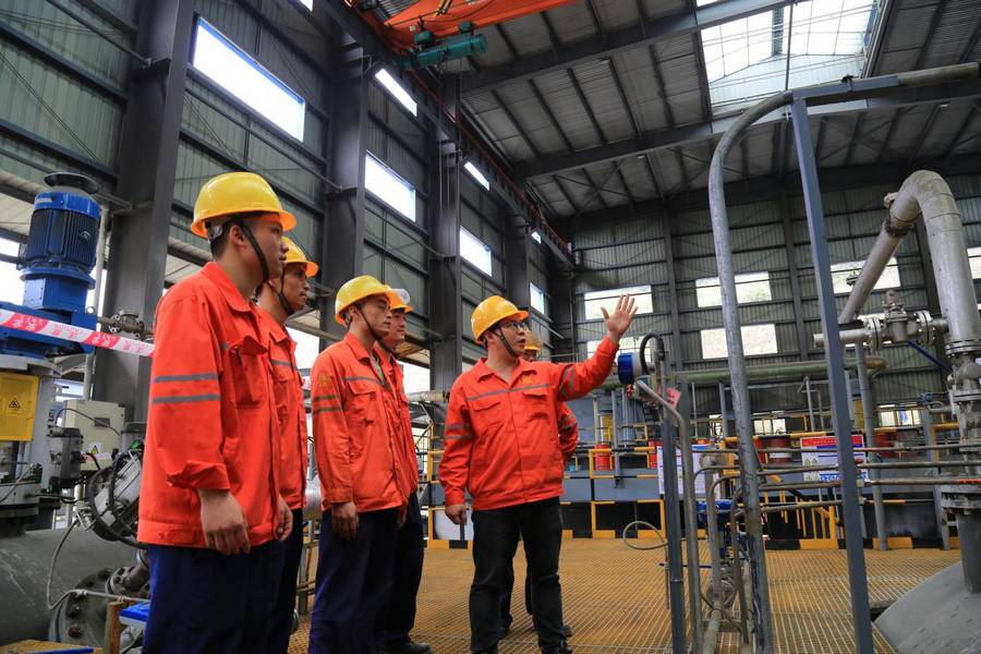 譽升鍺業工人在生產車間巡檢排查。 韋盼 攝