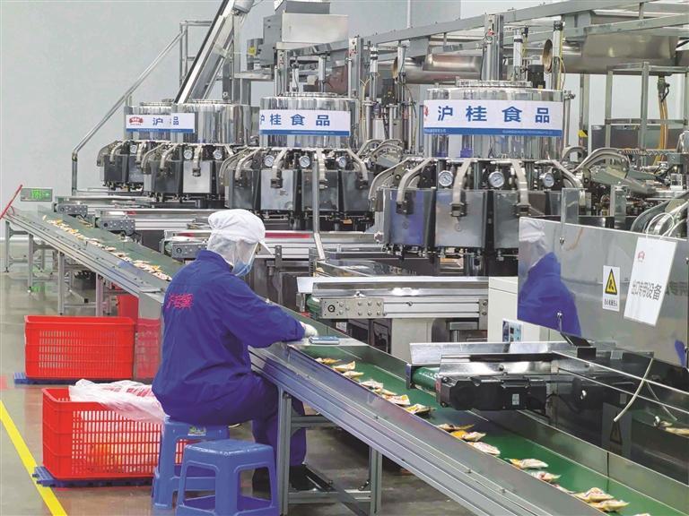 廣西滬桂食品集團有限公司智能產業園內的自動包裝車間。