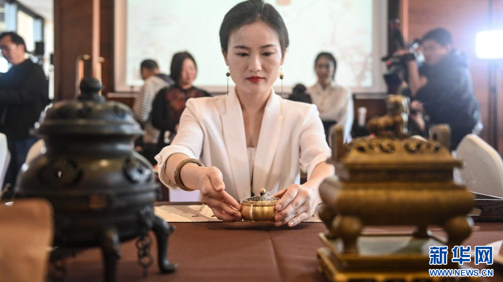 11月22日,在玉林國際香料會展中心,工作人員展示制香。