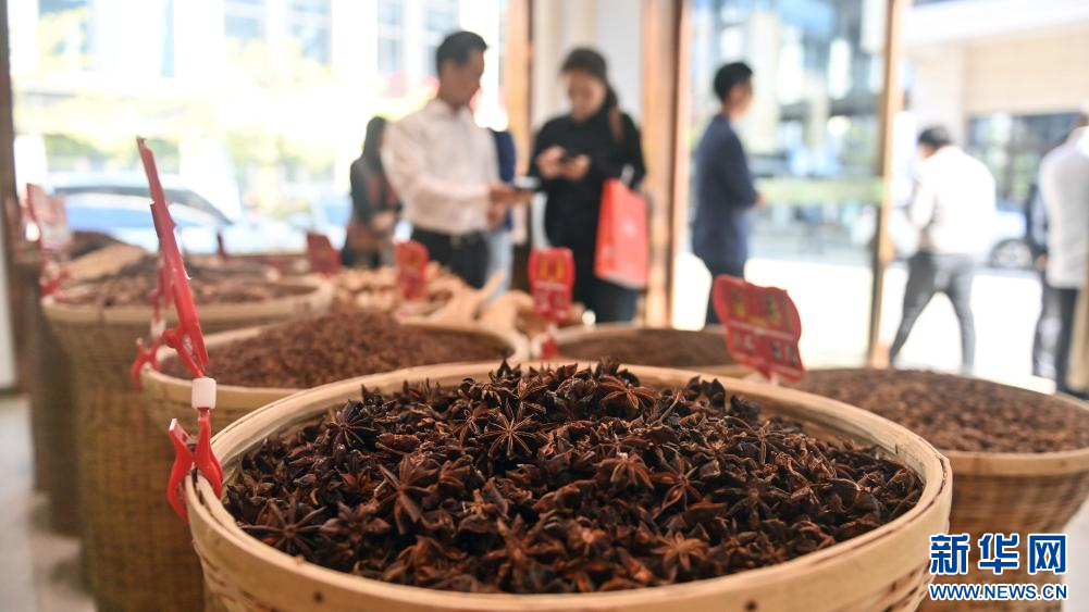 11月22日,游客和市民在玉林國際香料會展中心選購香料。