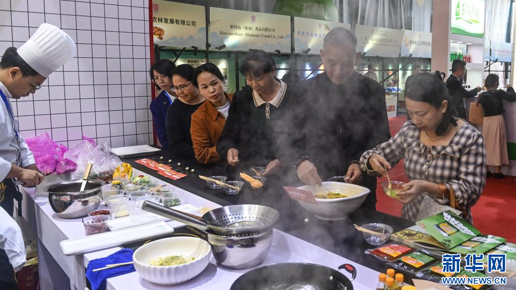11月22日,在玉林國際香料會展中心的烹飪調料展位,游客和市民在品嘗美食。