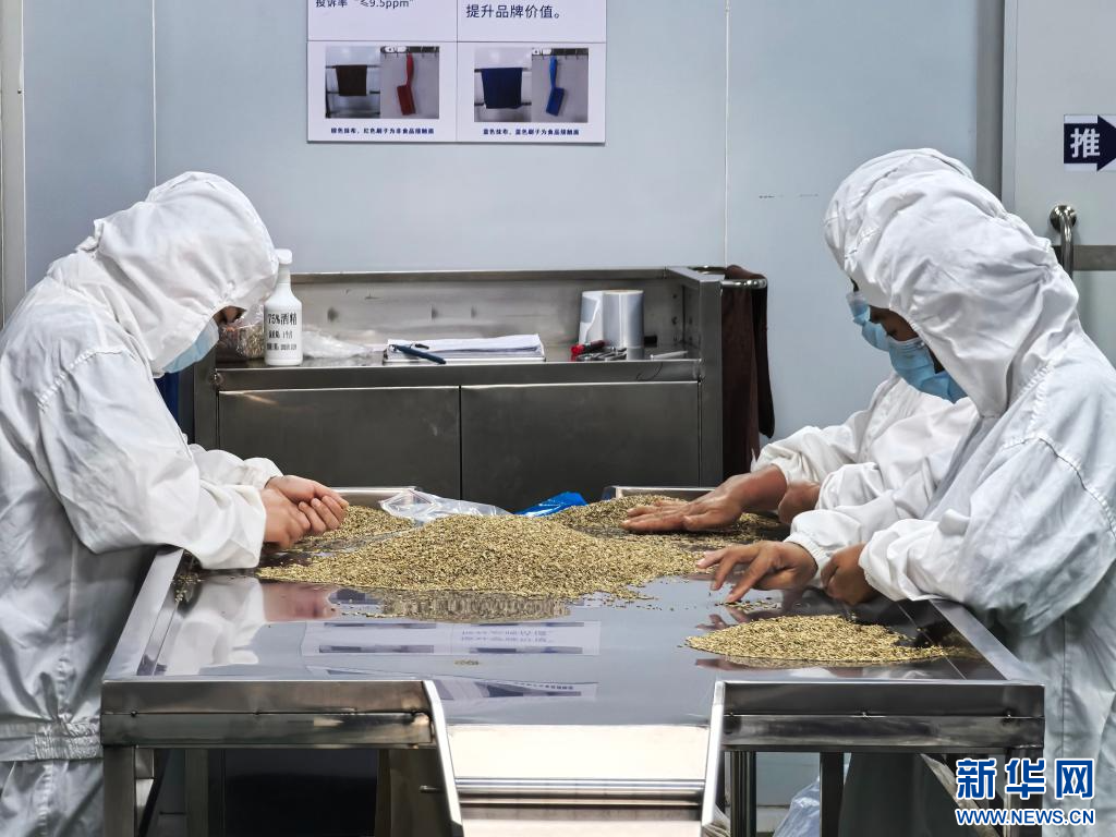 在寶碩公司生產車間內,工人在分揀小茴香。新華社記者 王楚然 攝