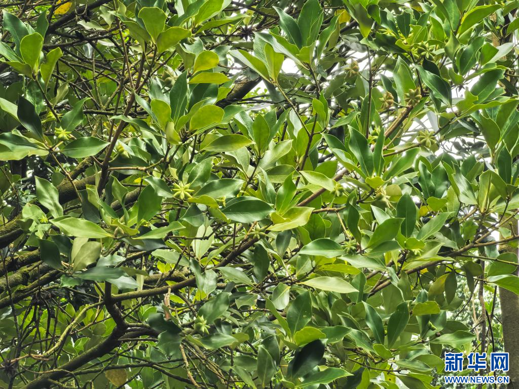 六萬林場的八角樹上,八角果實掛滿枝頭。新華社記者 王楚然 攝