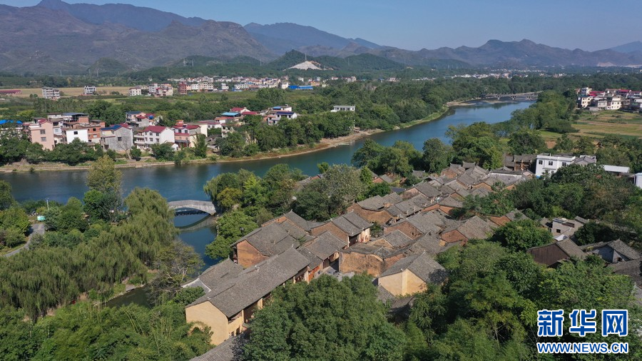 江口村布局呈現魚骨狀,沿著河道及山腳分布。(新華網發 汪家榮 攝)