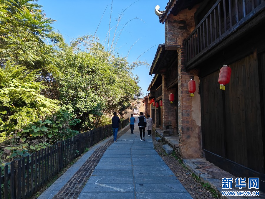 圖為游客在江口村古街上游覽。(新華網發 楊偉偉 攝)