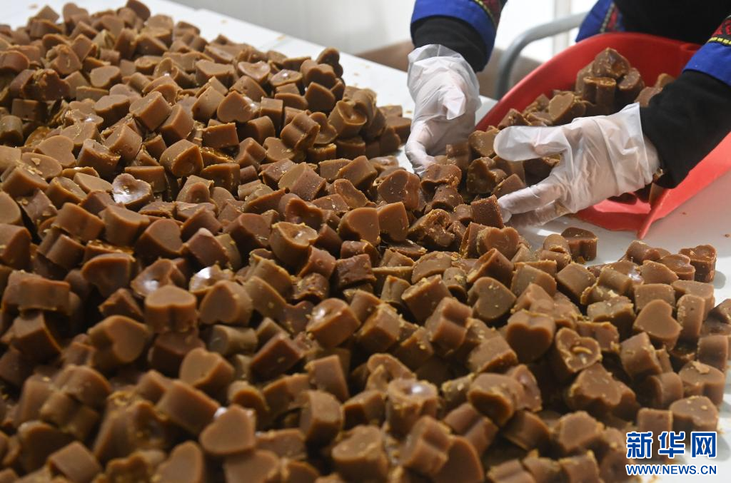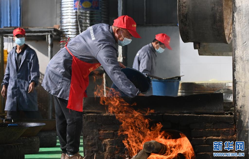 當日,廣西南寧市武鳴區府城鎮富良村定旺屯村民們加緊趕制紅糖,供應即將到來的春節年貨市場。