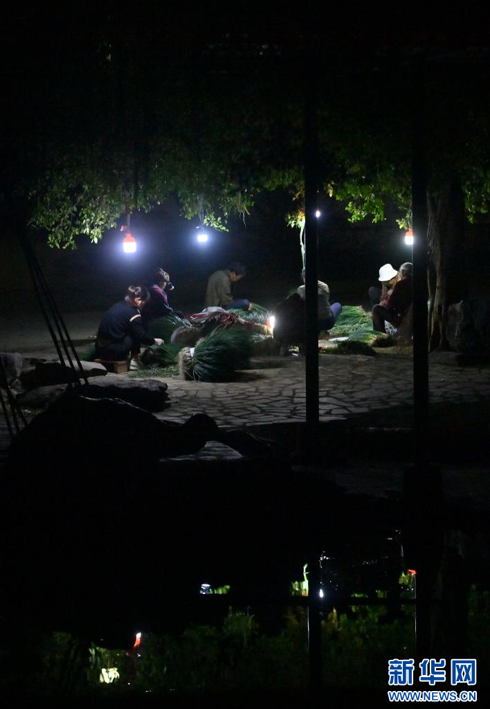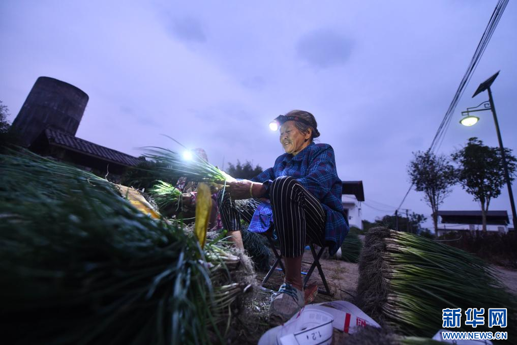 清晨,婦女們在柳州市柳江區三都鎮覺山村挑選香蔥(11月2日攝)。