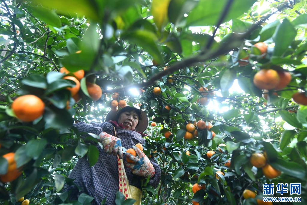 一名婦女在柳州市柳江區土博鎮四案村采收砂糖橘(12月18日攝)。
