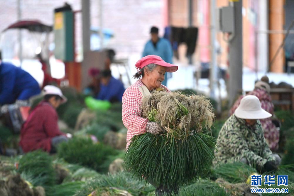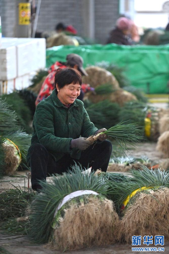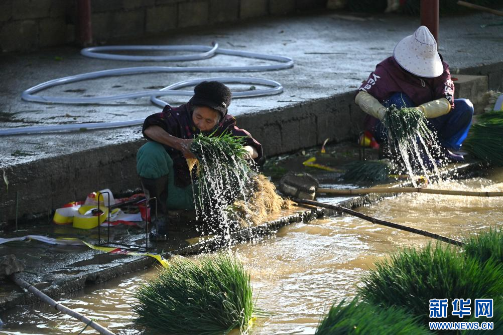 婦女們在柳州市柳江區三都鎮覺山村清洗香蔥(12月18日攝)。