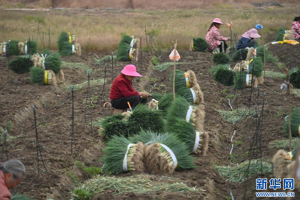 婦女們在柳州市柳江區三都鎮覺山村挑選香蔥(11月3日攝)。