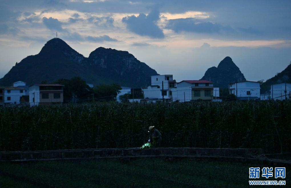 清晨,婦女們在柳州市柳江區三都鎮覺山村挑選香蔥(10月27日攝)。