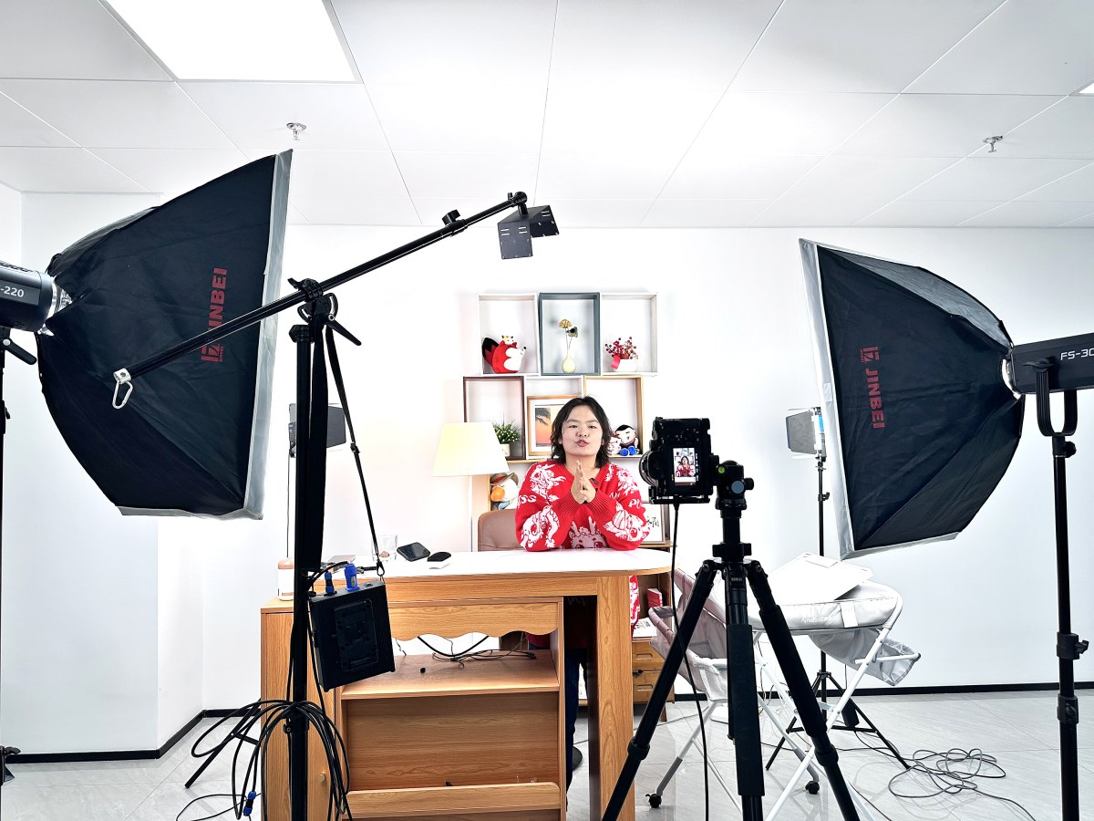南金直播電商基地里,12個專業品牌專屬直播間、超大豪華數字展示區、新媒體培訓室等設施一應俱全,還設置了體驗區,利用數字AR等技術搭建起虛擬直播間,參觀者可以挑選喜歡的背景,“布置”自己的直播間,現場體驗直播帶貨。