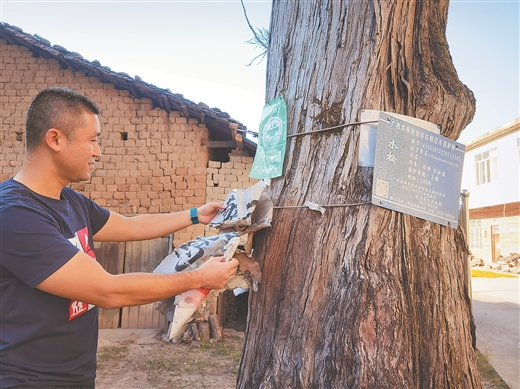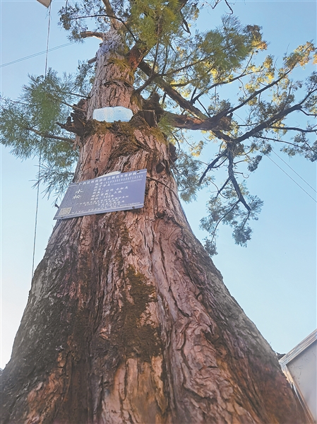 “村民把水松當作‘鎮村之寶’,給它打營養針,對過往運輸車輛限高,在地面打孔增加雨水滲透,冬天澆水……”沙子鎮保安村黨總支書記劉泳町告訴記者,村民世代與之和諧相處,還將其納入《鄉規民約》加以保護,讓這株水松健康生長。