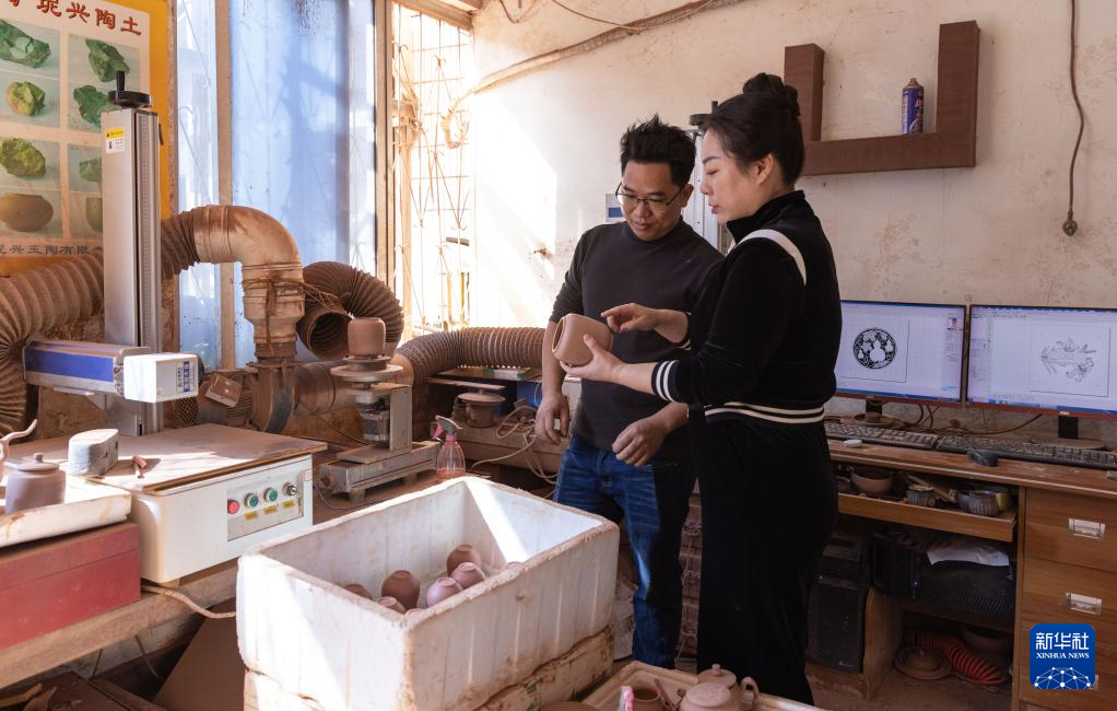 在郭卉看來,家鄉坭興陶產業的發展壯大離不開“守正創新”。如今,在郭卉位于欽州的工作室中,既能看到傳統的手工制坯、手工制壺、模具制作,也有激光打印、雕刻等較新的技術應用。2020年,郭卉被評為全國勞動模范。下一步,郭卉計劃在南寧開辦坭興陶展覽館,繼續傳播坭興陶文化。