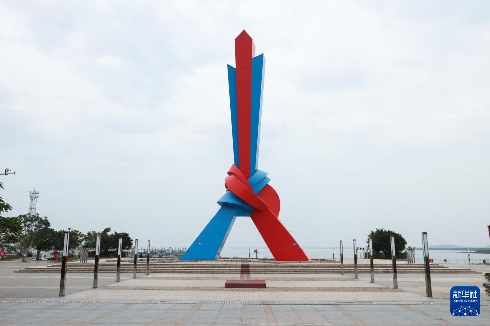 1月8日拍攝的位于廣西東興的山海相連地標廣場。