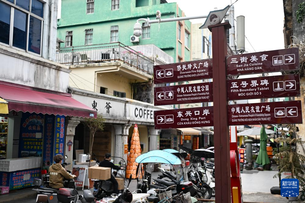 1月8日拍攝的東興街頭中英越三語指路牌。