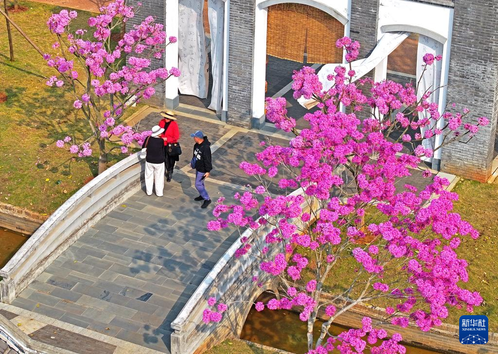 時下,正是廣西南寧園博園上千株紫花風鈴木盛放時節。冬日里,紫花風鈴木花朵格外嬌艷,吸引游客前來觀賞。