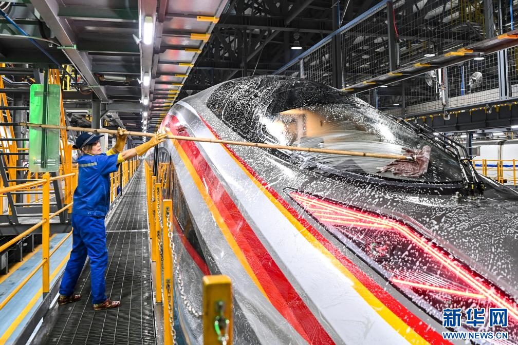 1月14日,2025年春運開啟。各地鐵路部門對列車進行維護、清潔、保養,確保春運期間列車運行安全。