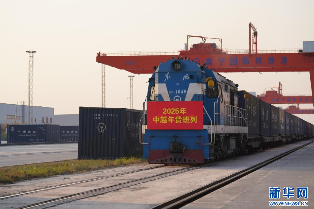 新華社南寧1月15日電(記者 陳露緣、胡佳麗) 在中越邊境的崇山峻嶺中,1122號界碑靜靜地佇立著,一列火車飛馳而過,滿載著貨物越過國境線,駛向越南。