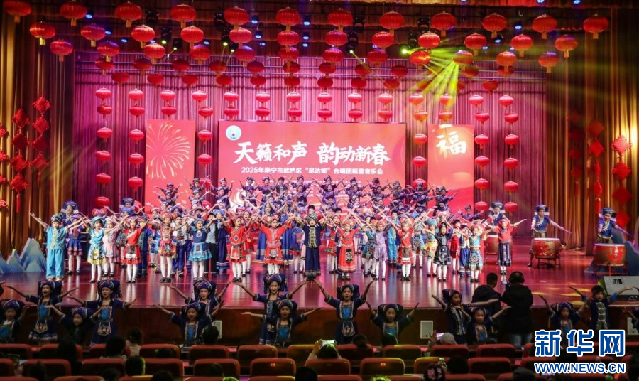 1月19日晚,“天籟和聲·韻動新春——2025年南寧市武鳴區‘尼達妮’合唱團新春音樂會”在廣西南寧市武鳴區大繡球廣場舉行。當天晚上,武鳴區“尼達妮”合唱團培訓基地(學校)、“尼達妮”合唱團集訓班、“靈水壯族歌圩”傳承基地等成員共同演繹了16個精彩紛呈的作品。