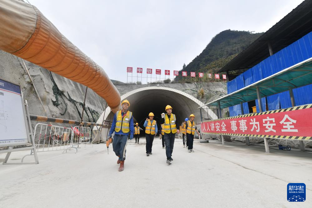 中鐵二十局的工人在柳州市柳江區三都鎮魚宜高速公路建設工地作業(1月23日攝)。