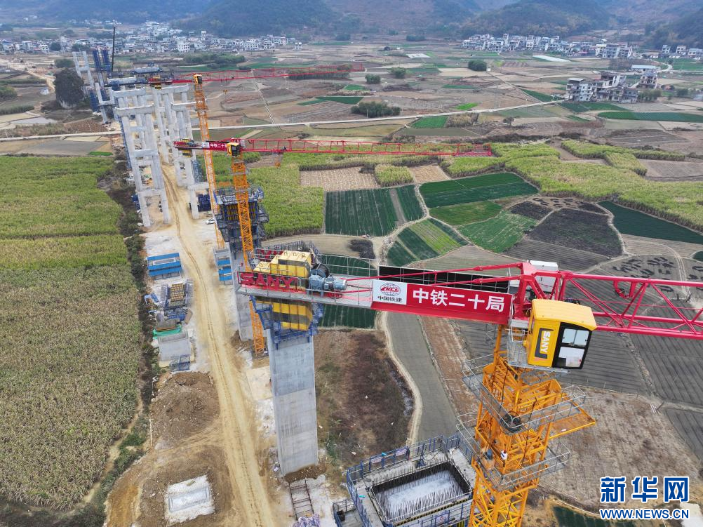 在柳州市柳江區三都鎮魚宜高速公路建設工地,中鐵二十局的工人在作業(1月23日攝)。
