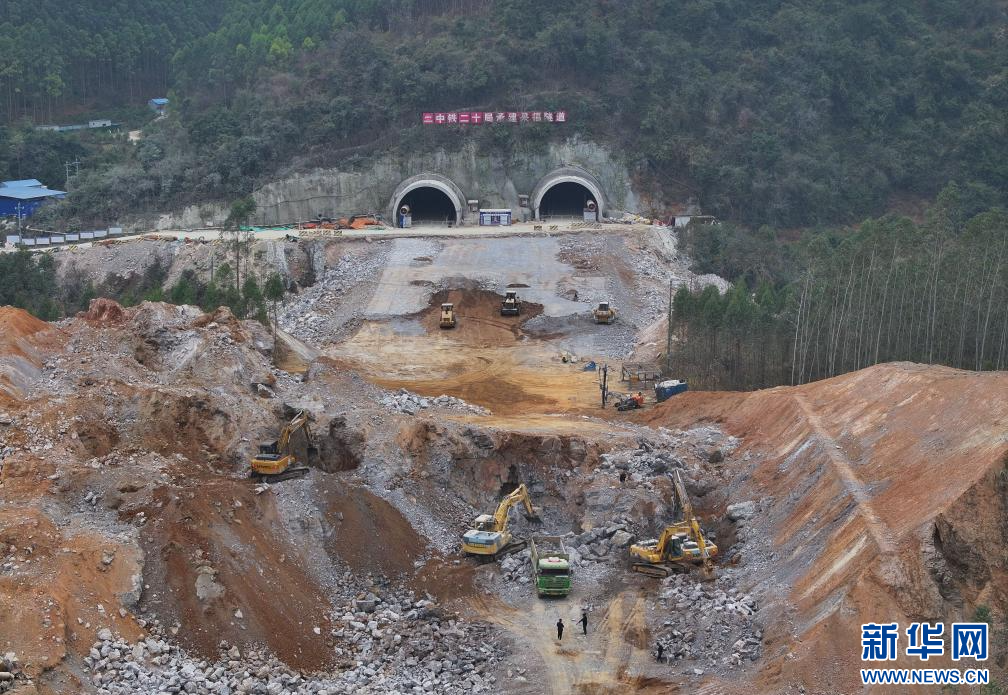 這是柳州市柳江區三都鎮魚宜高速公路建設工地現場(無人機照片,1月23日攝)。