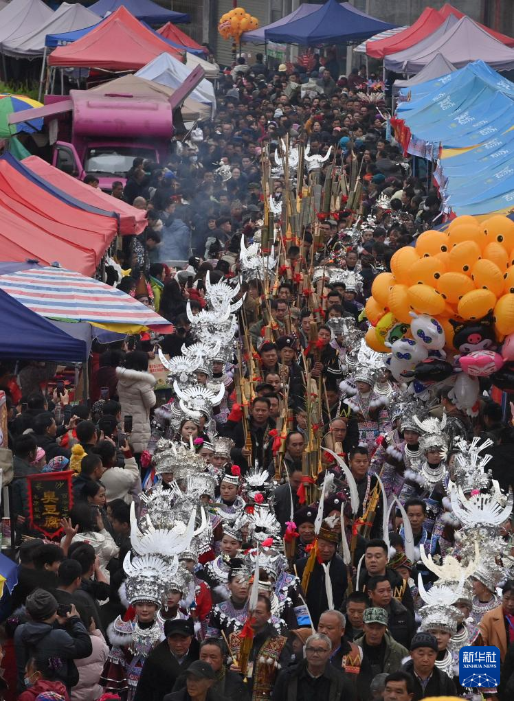 2月10日,蘆笙隊走進柳州市融水苗族自治縣安太鄉“十三坡會”。