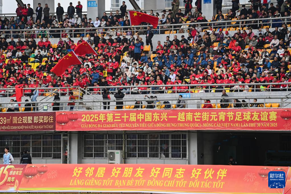 2月12日,第30屆中國東興—越南芒街元宵節足球友誼賽在廣西東興市舉行。(東興市融媒體中心供圖)