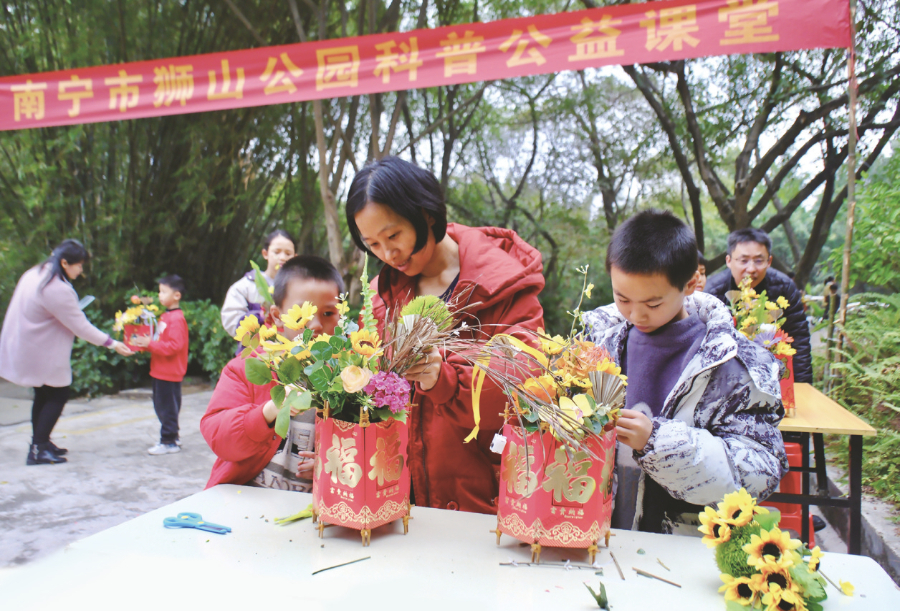 當日上午,一場別開生面的“紅包花燈”手工制作公益課堂在獅山公園西門歡樂開課。在老師的指導下,20組家庭的孩子們將紅包與傳統插花藝術巧妙結合,制作出一個個獨具匠心、寓意吉祥的手工花燈。孩子們的笑臉與紅火的花燈交相輝映,現場充滿濃濃的喜慶氛圍。