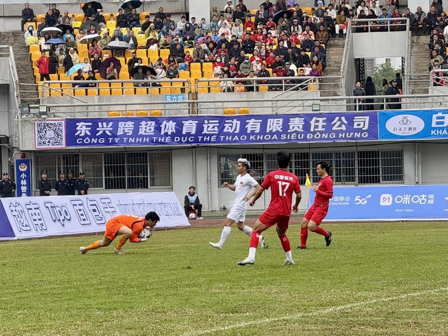 中國東興市足球隊隊長余鑫說:“長期以來我們都和越南芒街市有足球上的交流,平時也會一起踢球。元宵節足球友誼賽是我們邊民之間傳統的比賽,也是東興與芒街交流的橋梁之一?!?/p>